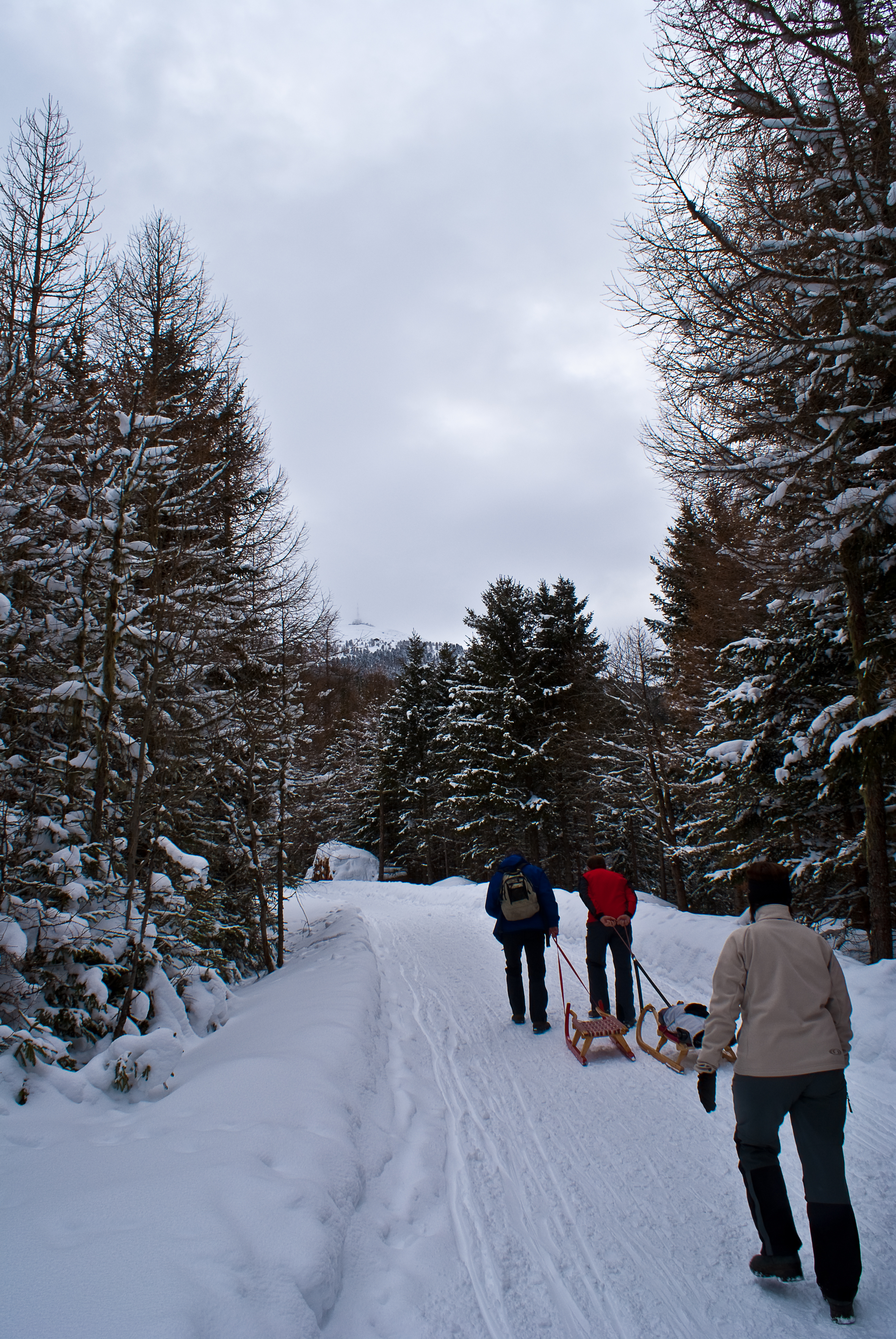 Das Hinunterrodeln war teilweise recht flott, teilweise sehr lahm. Im oberen Teil sind erträglich hohe Schneewände. Oftmals ist die Strecke eisig. Viele, teilweise sehr starke, Hopser machen das herunterrodeln weniger angenehm.
