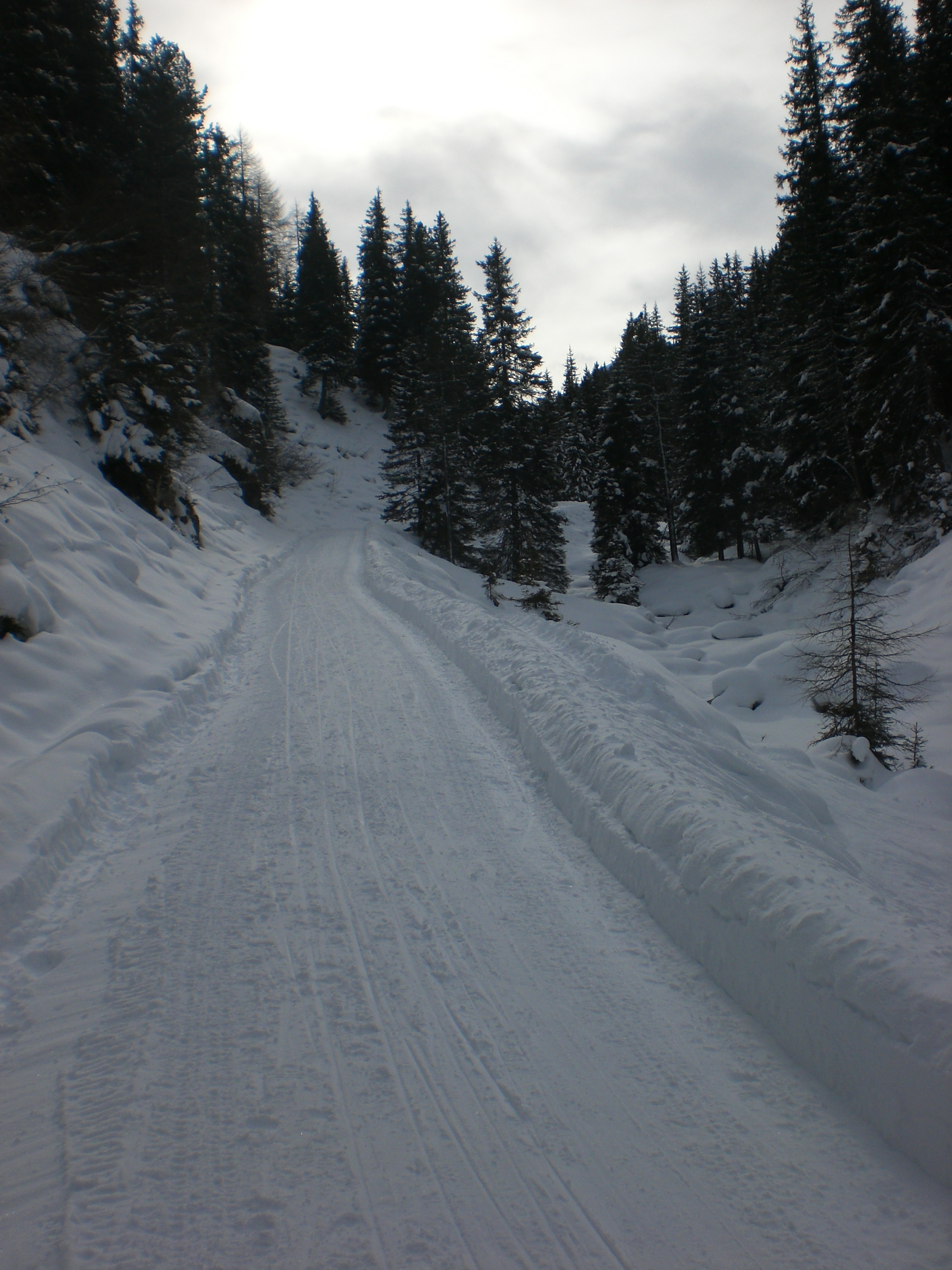 nach Salfains schöne Schneewände und recht flott, weiter unten dann etwas langsamer durch den Neuschnee.