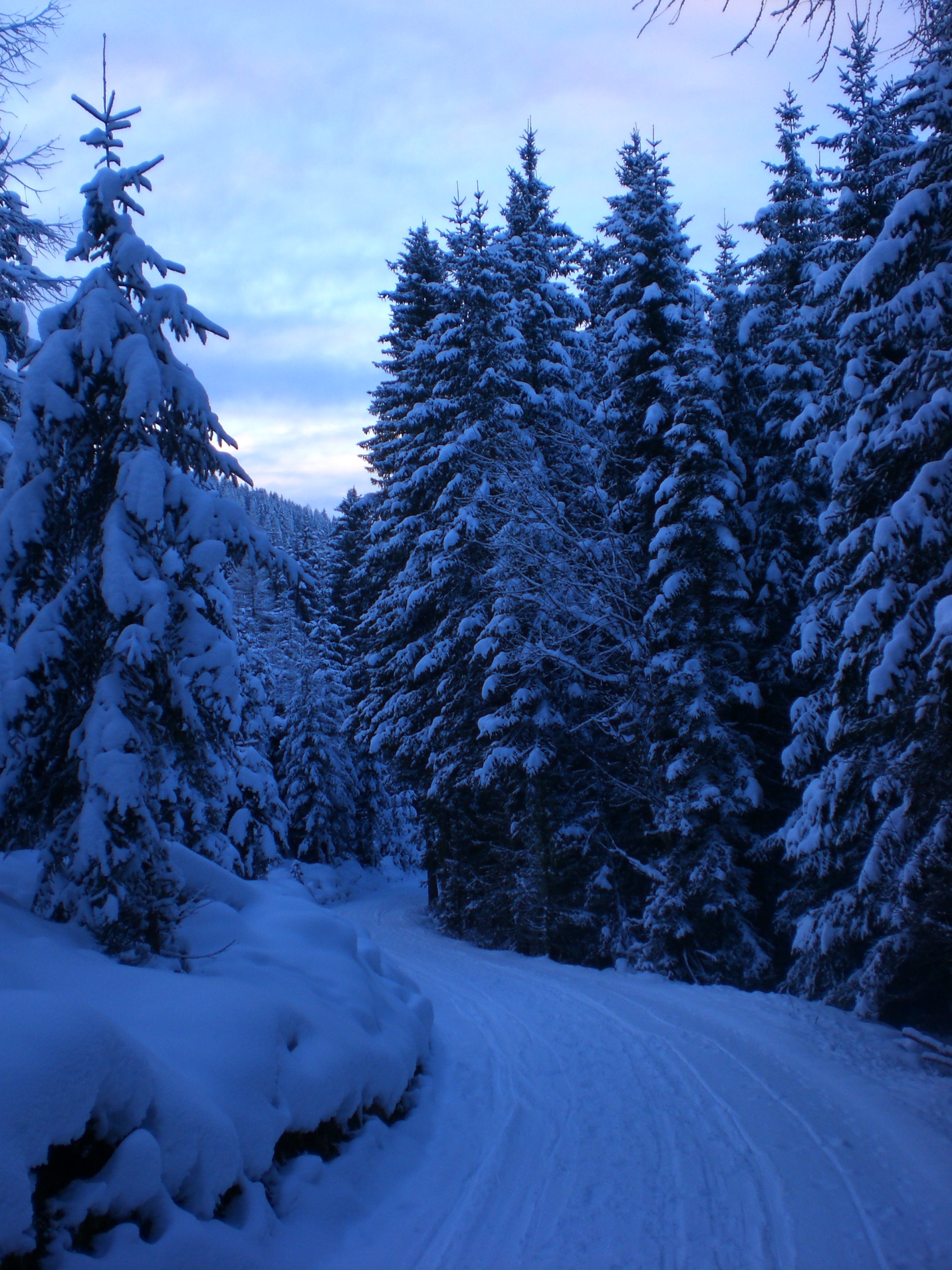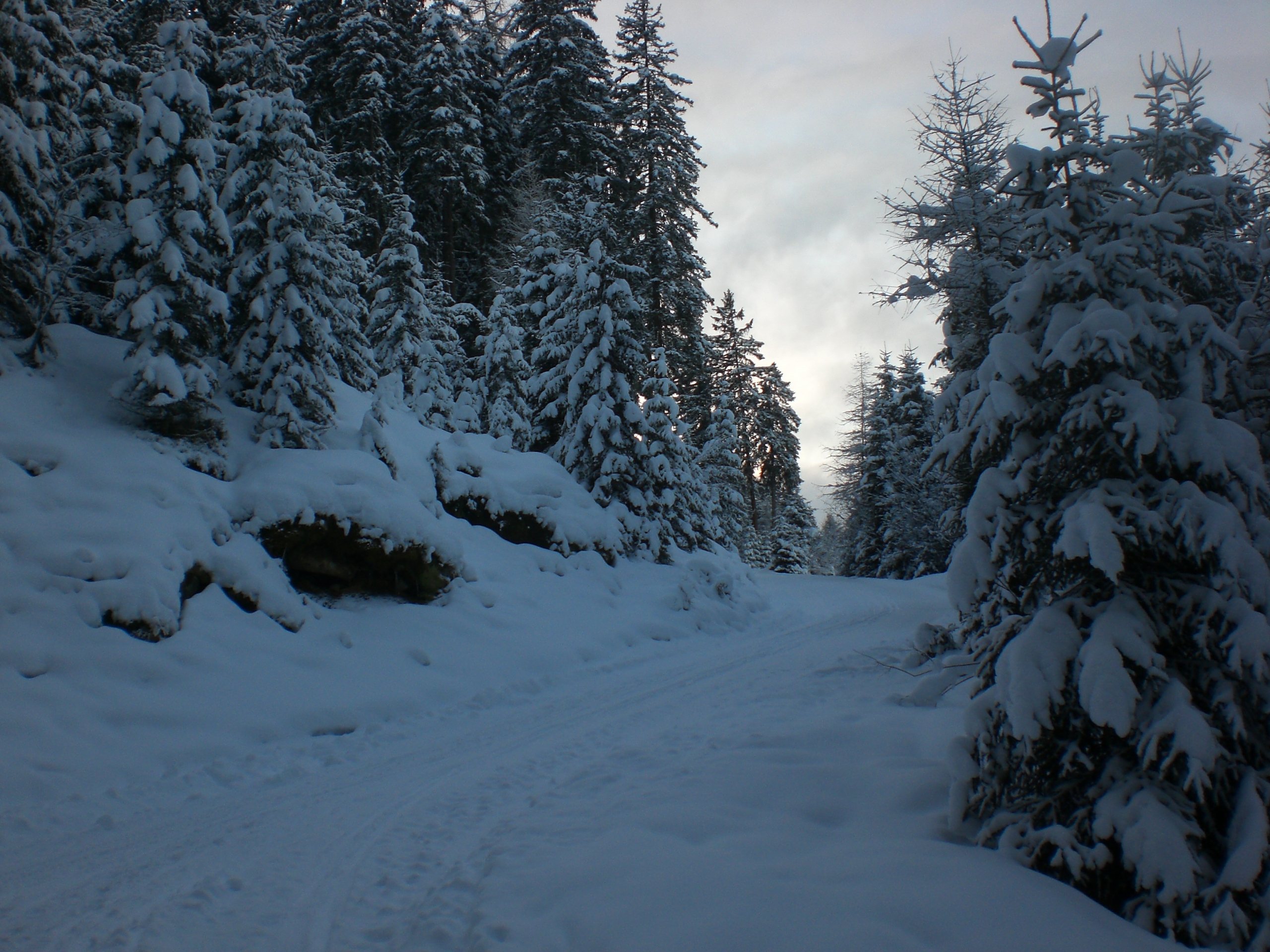 Bei der Abfahrt gegen 17:00 war es am Freitag schon dunkel - zum Glück hatte ich meine Stirnlampe dabei. Mit der gebotenen Vorsicht ging es zurück ins Tal; der Neuschnee in der Bahn war kein Problem und verlangsamte die Fahrt nicht wirklich - es war allemal schnell genug. Erst im unteren Abschnitt kamen ein paar Steine durch - insgesamt ein GUT
