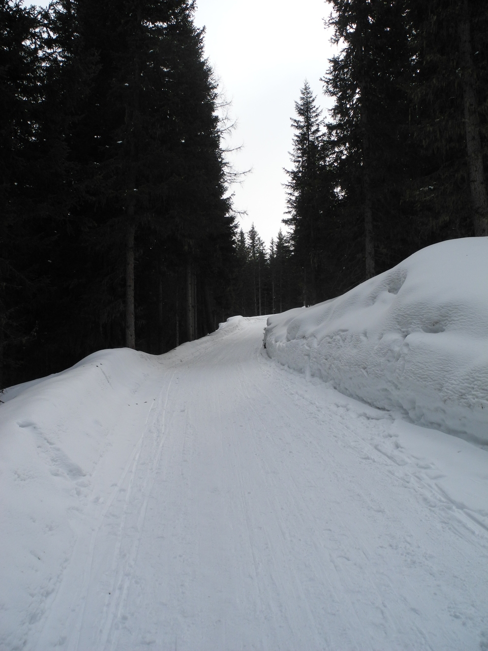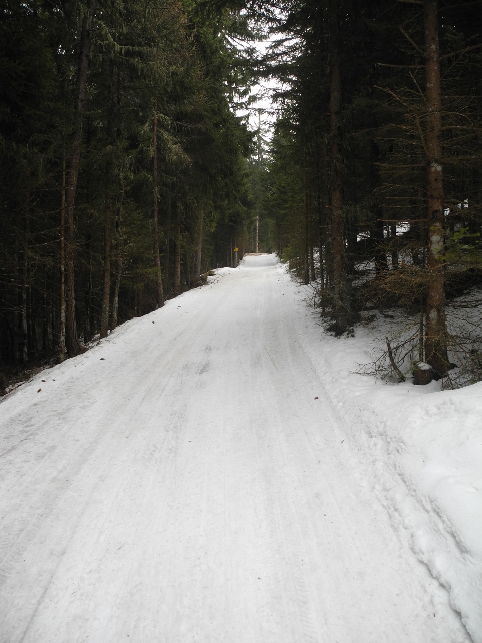 11:00 war dann im oberen Abschnitt flott; es gab schöne Schneewände aber auch einige Mugel und in den Kurven war es glatt. Ab dem Hüttenboden ging es dann schon sehr flott zur Sache, da es vermehrt eisige Abschnitte gab. Mit kontrollierter Fahrweise und rechtzeitigem Bremsen kam man aber gut bis zum Parkplatz hinunter; apere Stellen gab es heute praktisch noch keine. Für mich insgesamt ein