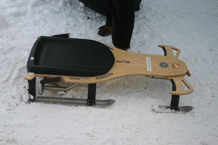 Hallo , es gibt ein neues Schnee-Fungerät. Ich hatte letztes WE die Möglichkeit das Teil zu testen und mit dem Hersteller ausgiebig zu reden. Man kann es am ehesten als Edel - Lenkbob bezeichnen, alles ist sehr hochwertig verarbeitet und stabil konstruiert.