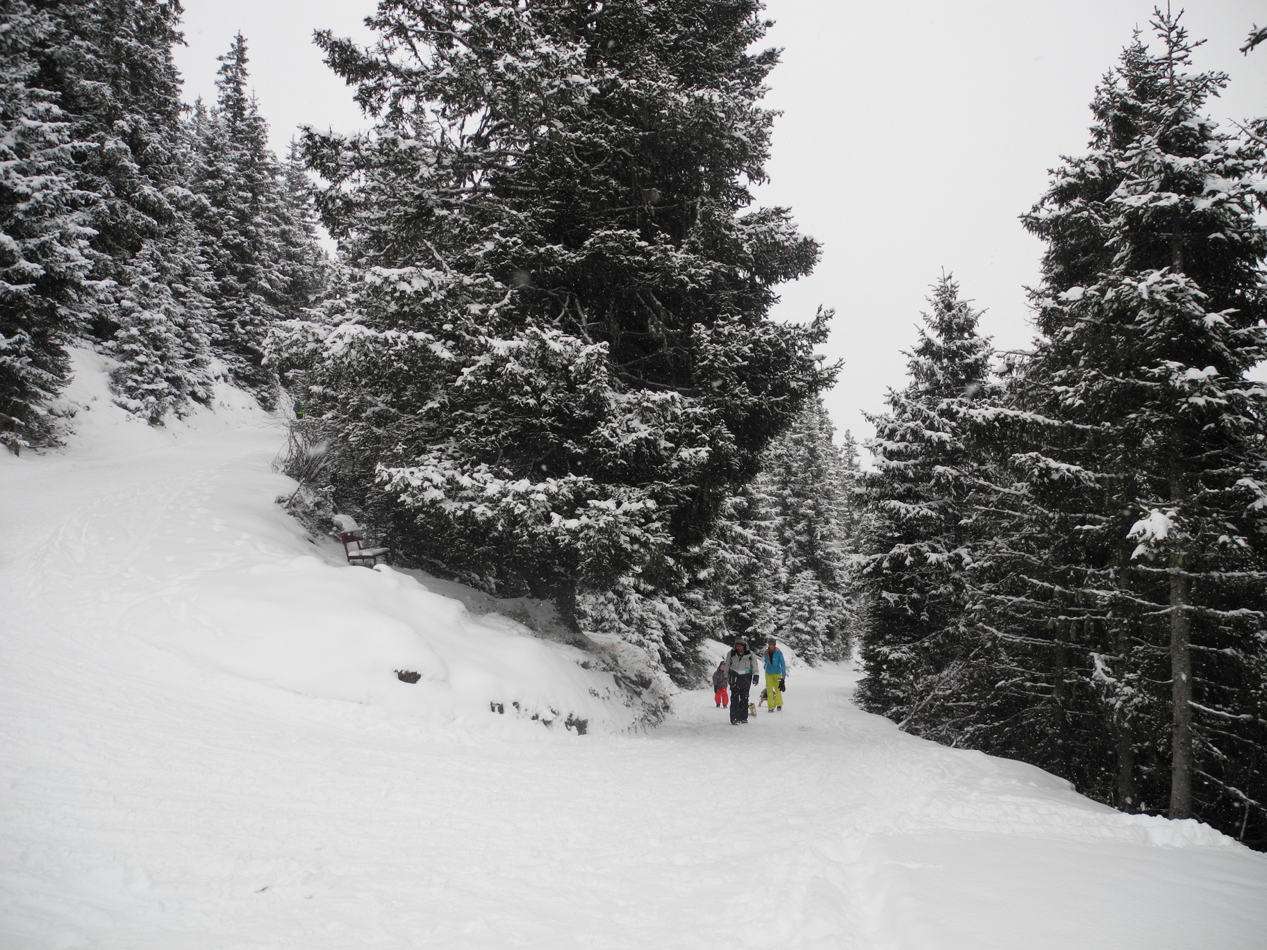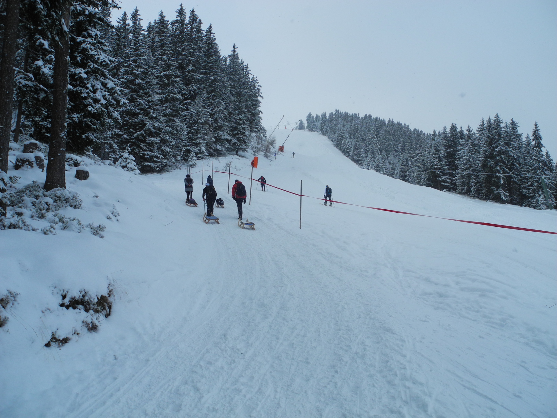 Nach einer Schleife verläuft die Rodelbahn ein kurzes Stück parallel zur Schipiste, die heute den Schitourengehern alleine gehörte. In diesem steileren Abschnitt heißt es bei der späteren Abfahrt Schwung holen für das nachfolgende Flachstück ;)
