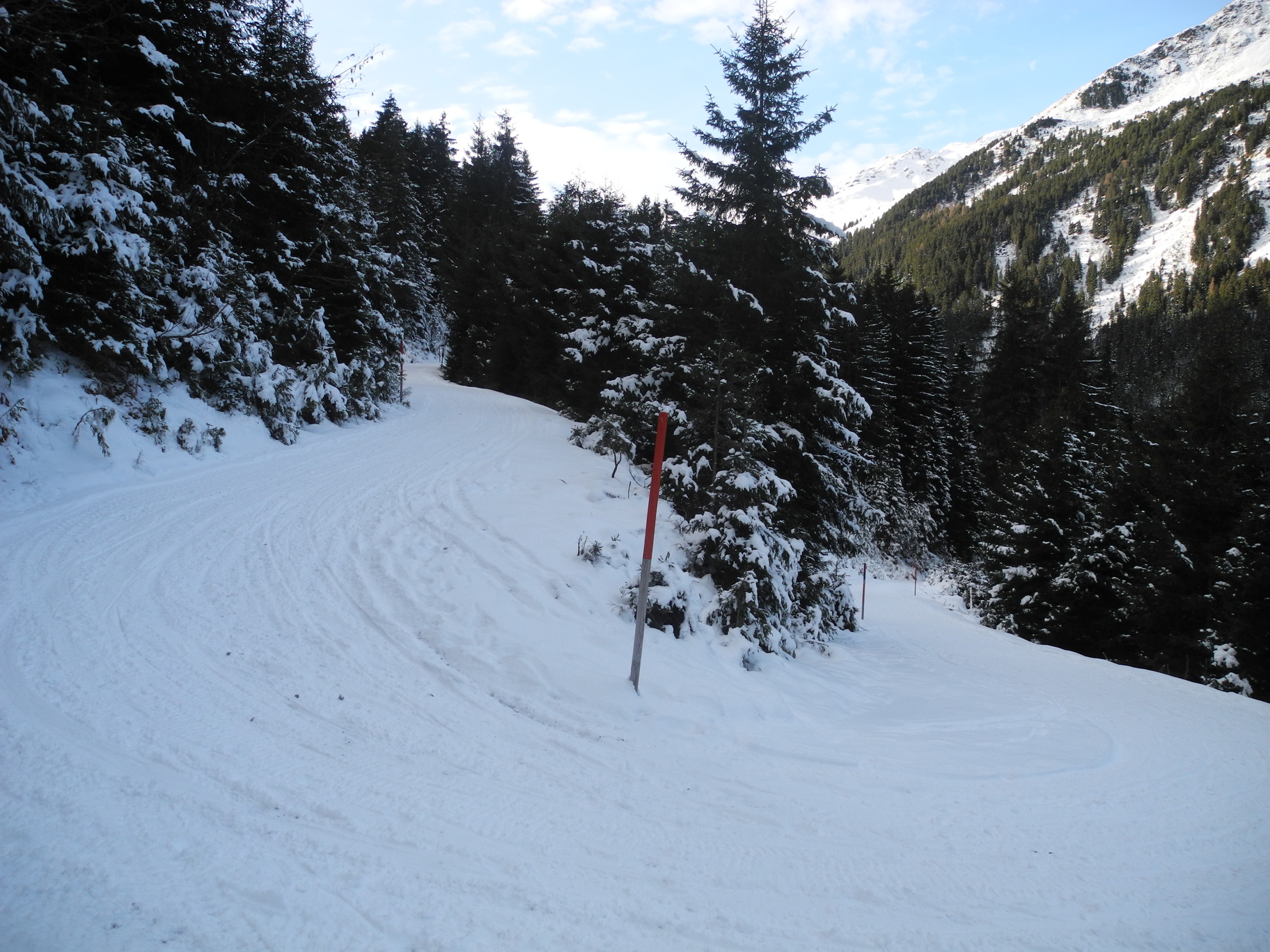 Zum Glück war's ab Gries ins Lüsenstal hinein dann doch etwas weißer und beim Parkplatz angekommen zeigte sich dann doch der Winter: die Rodelbahn war von Anfang an in einem erstaunlich guten Zustand: