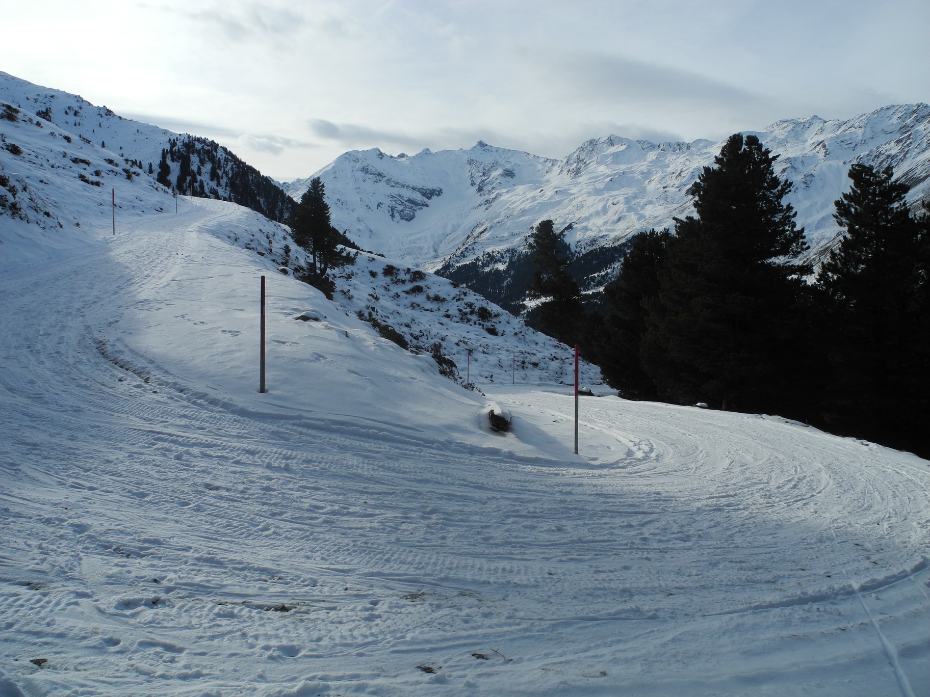 Die Bahn war erstaunlich gut in Schuß - im oberen Abschnitt ein paar Steine und etwas weich; im Mittelstück nur in den Kurven einige wenige Steine - ganz unten etwas eisig. Insgesamt kein Geschwindigkeitsrekord sondern eher gemütlich, aber ein schöner Rodelausflug.