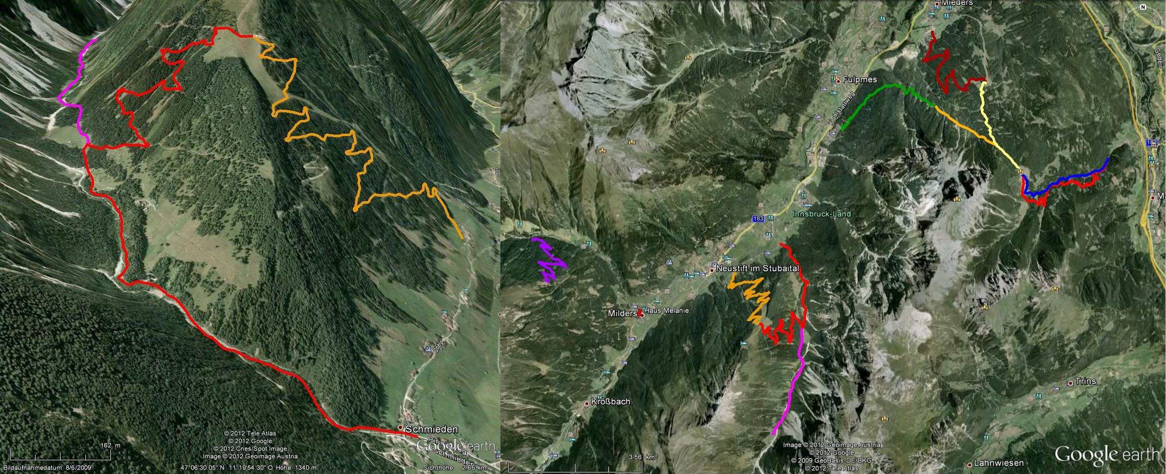 Im Nachhinein mache ich eine Sammlung unseres Rodelurlaubs mit Bilder und Karten. Zur Veranschaulichung lade ich die Rodelbahnen auch gern in Google Earth. Da können sich Nichtrodler dann eher etwas drunter vorstellen.