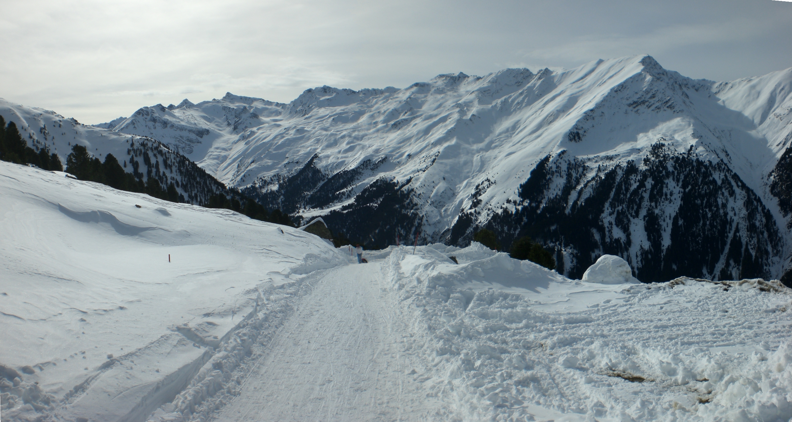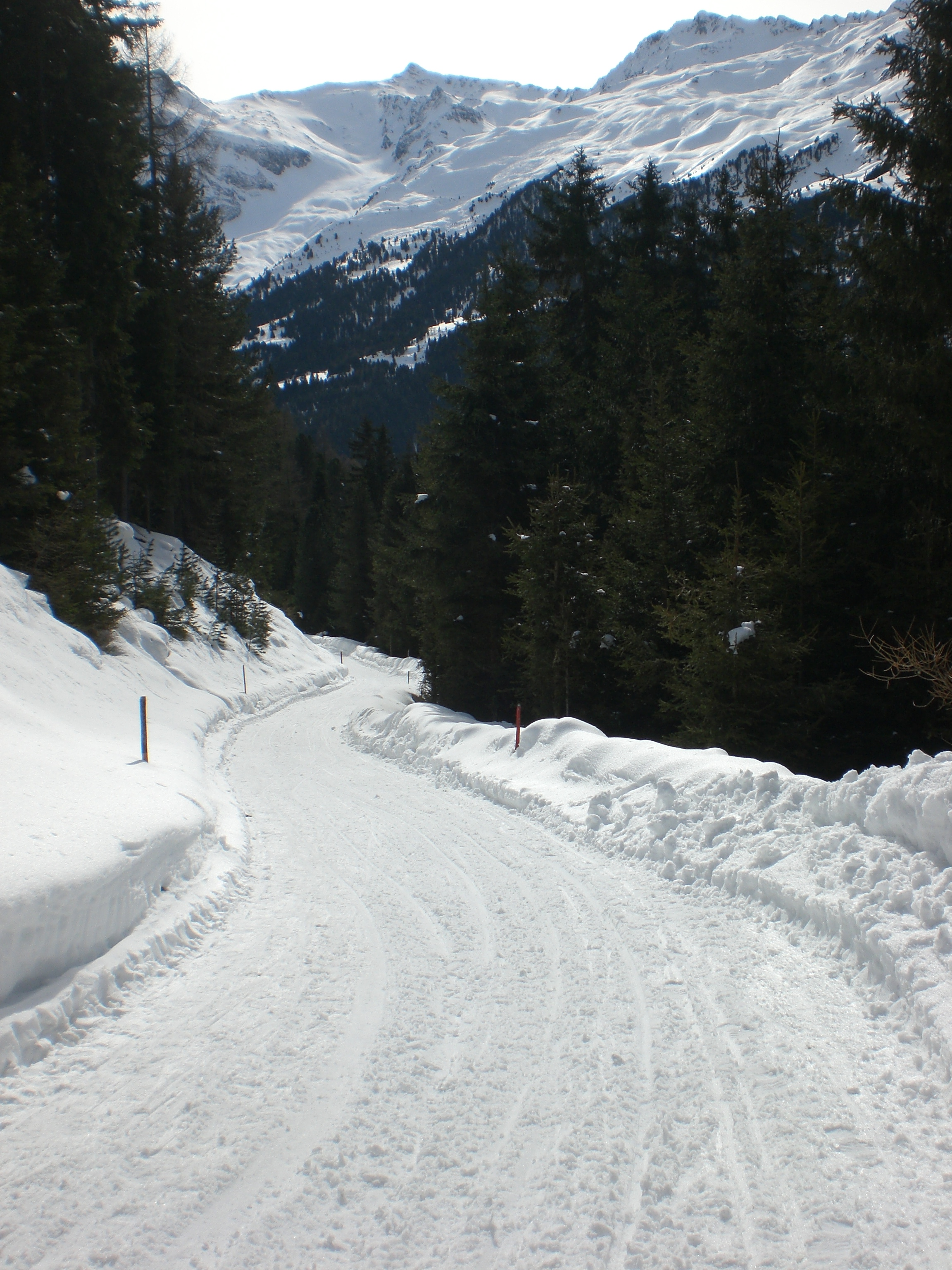 Der Abschnitt bis zur Jagdhütte war beim Aufstieg ab 10:15 noch etwas hart (dadurch auch gut zu gehen ;)) und bestens präpariert, mit durchgehend schönen Schneewänden. Vom allgegenwärtigen Tauwetter ist hier zum Glück noch nicht viel zu spüren.