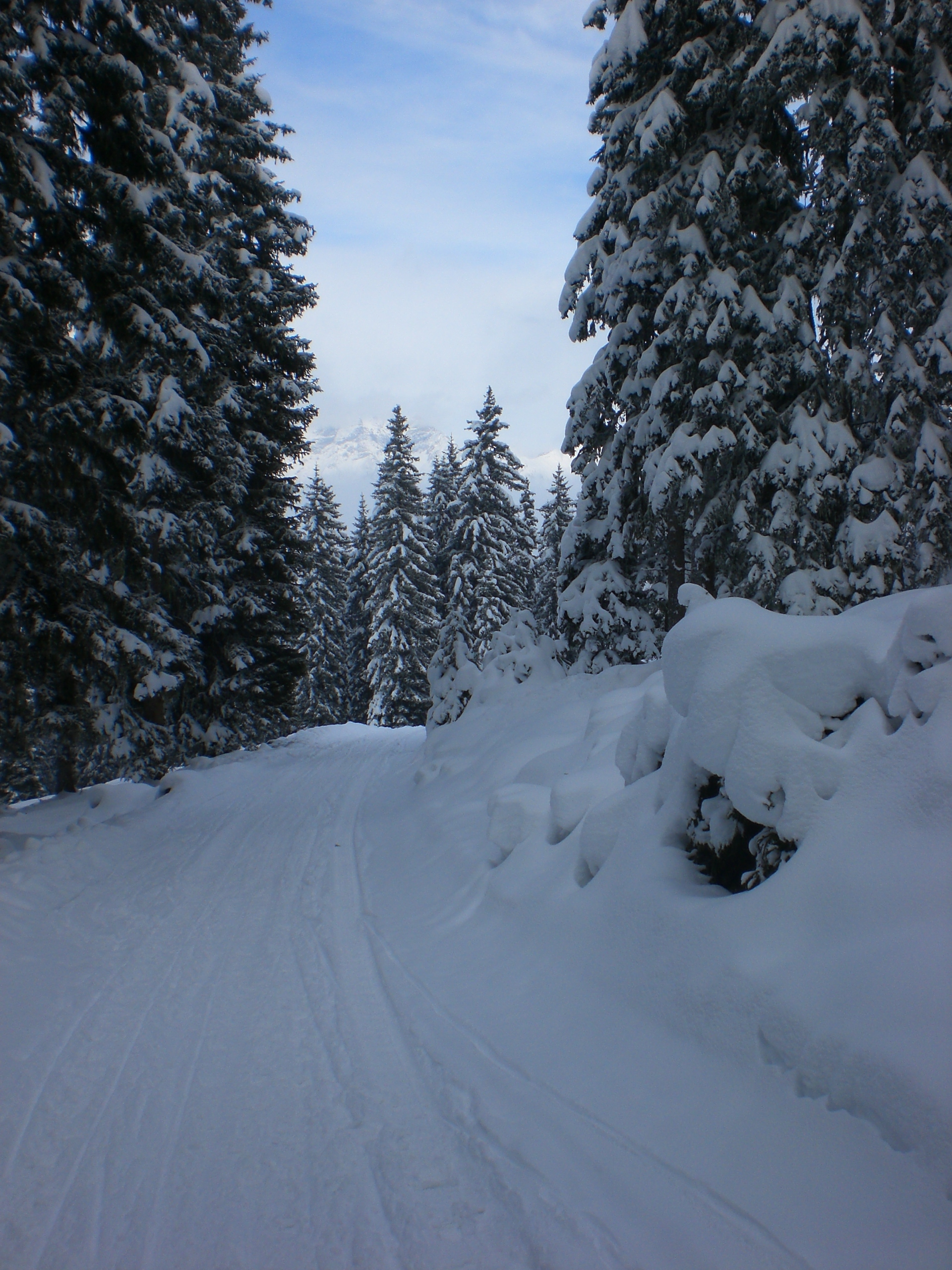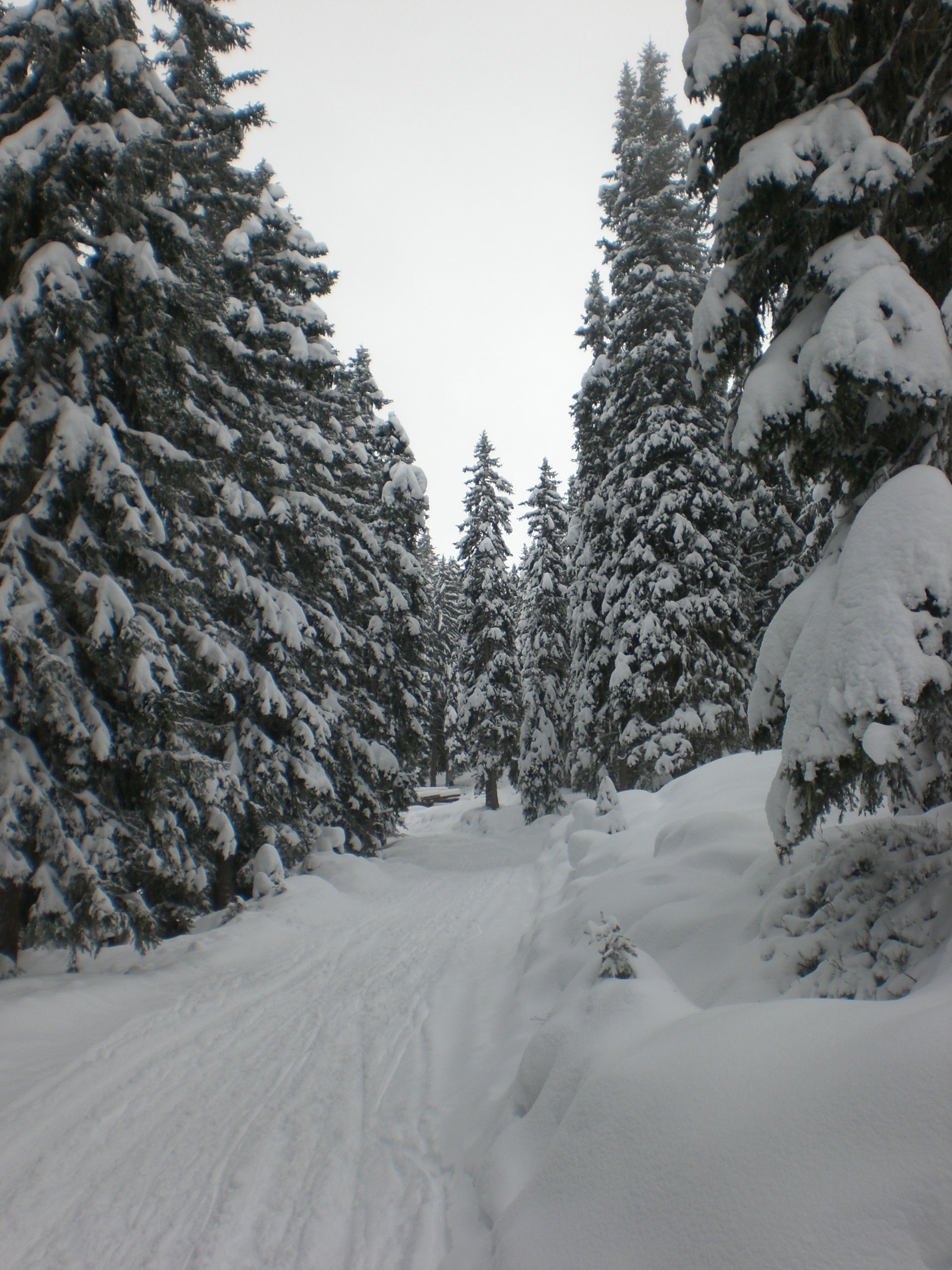 Die Talfahrt war dann wie vermutet etwas gemütlich durch den Tiefschnee auf der Strecke; dafür gab es praktisch keine Hopser und kein Eis. Unterwegs konnte man auch die Winterstimmung so richtig genießen:
