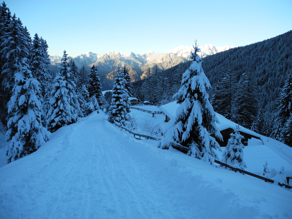 Diese Möglichkeit bot sich mir heute auf der Rodelbahn Pleisenhütte: Zwar war im Schigebiet Axamer Lizum die Hölle los :strangedev: und die Autos standen bis fast zum Parkplatz der Birgitzer Alm hinunter - aber ich wählte die stressfreie Anreise mit dem Bus ;) . So blieb mir das Chaos erspart und gleich hinten bei der Schafalm erwartete mich die Stille und eine Winteridylle: