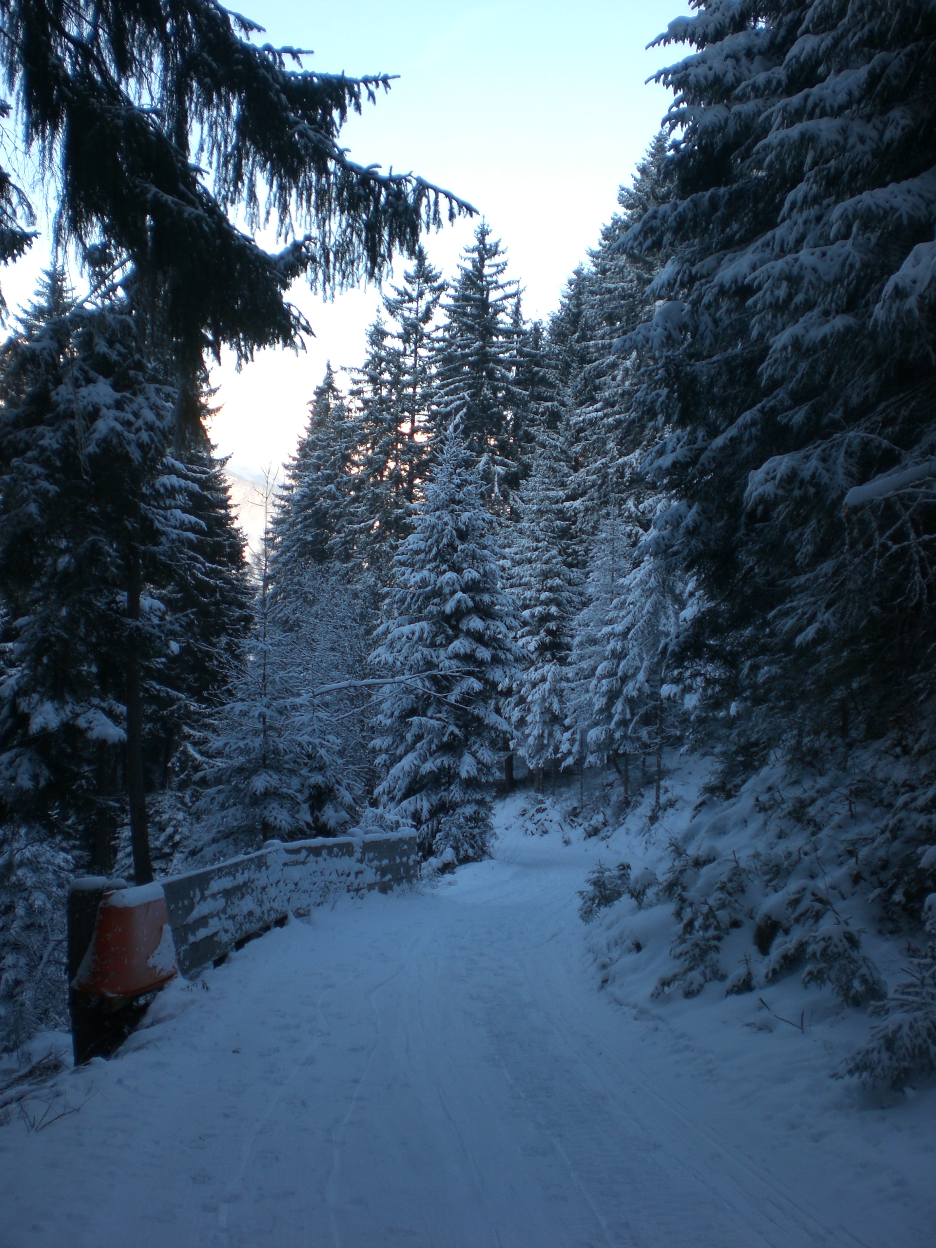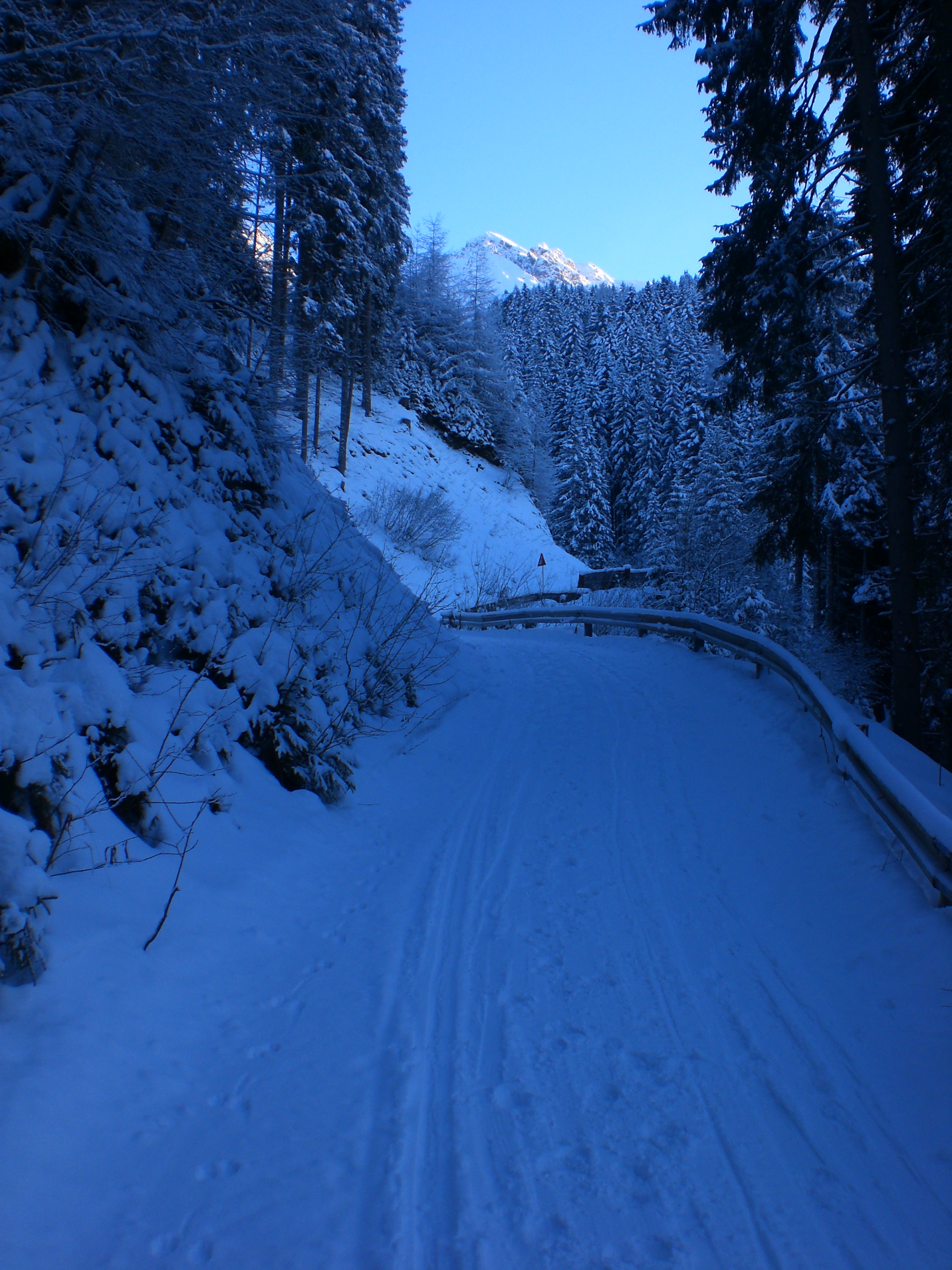 Bei der Abfahrt gegen 17:00 war es am Freitag schon dunkel - zum Glück hatte ich meine Stirnlampe dabei. Mit der gebotenen Vorsicht ging es zurück ins Tal; der Neuschnee in der Bahn war kein Problem und verlangsamte die Fahrt nicht wirklich - es war allemal schnell genug. Erst im unteren Abschnitt kamen ein paar Steine durch - insgesamt ein GUT
