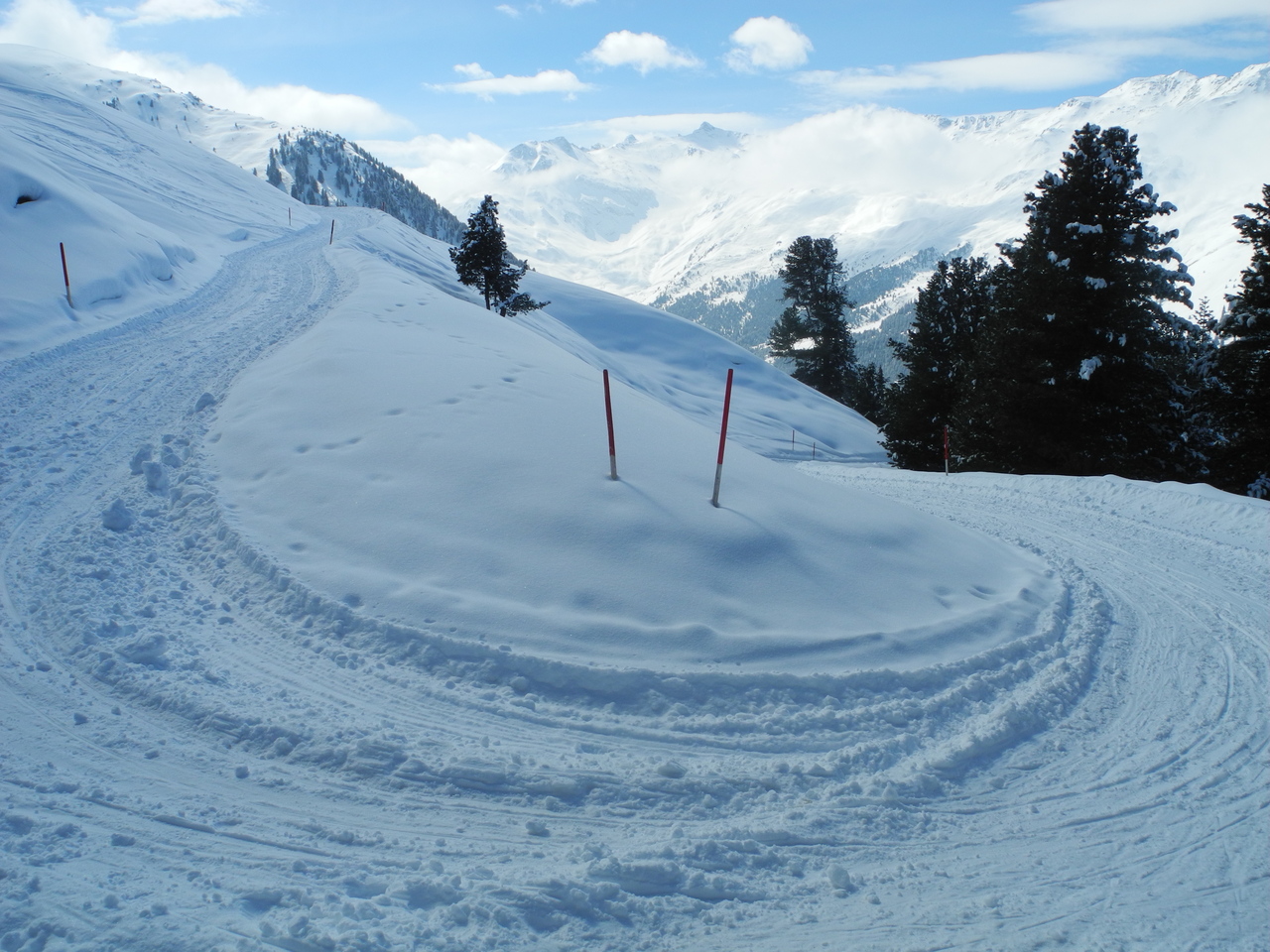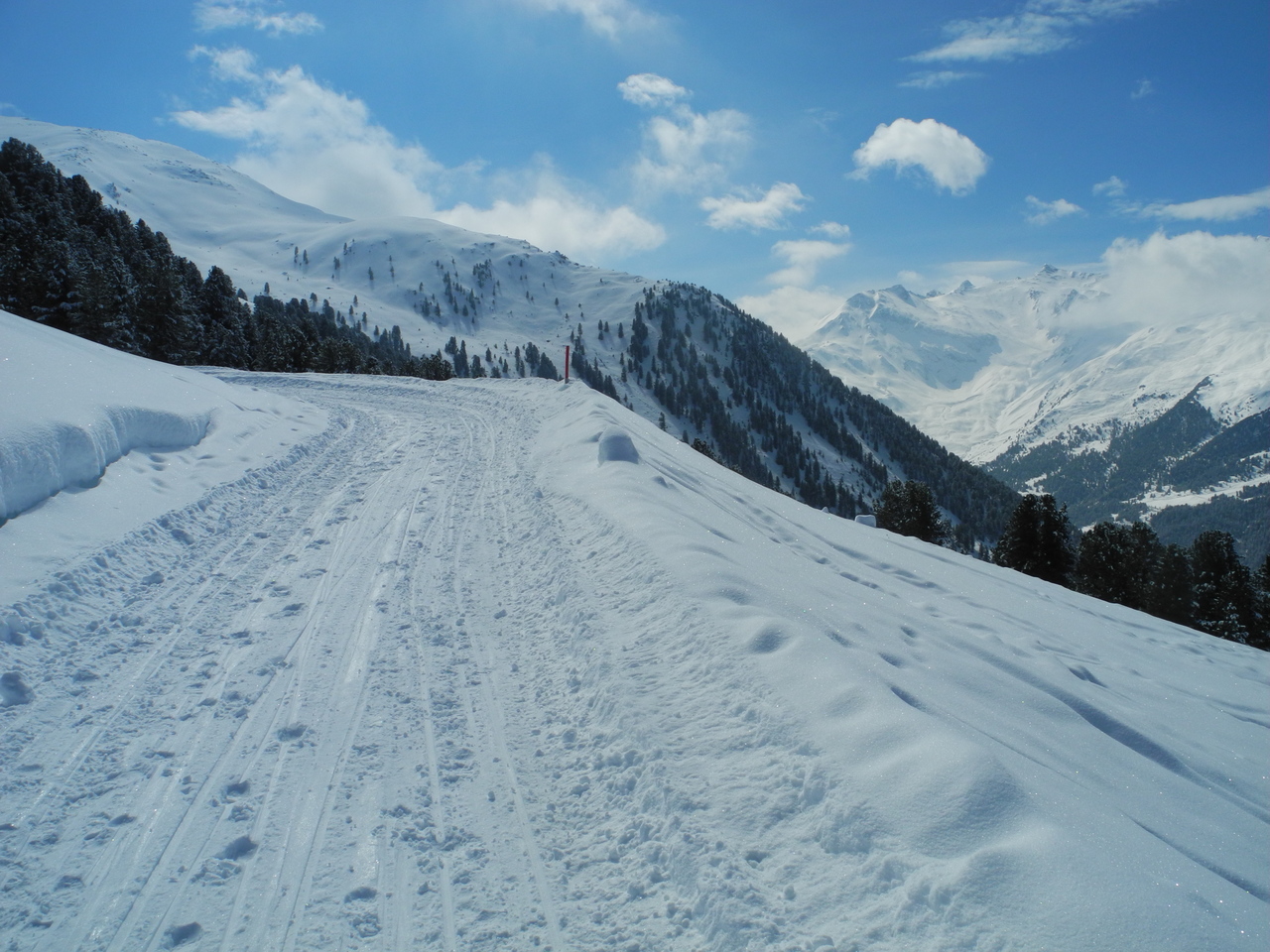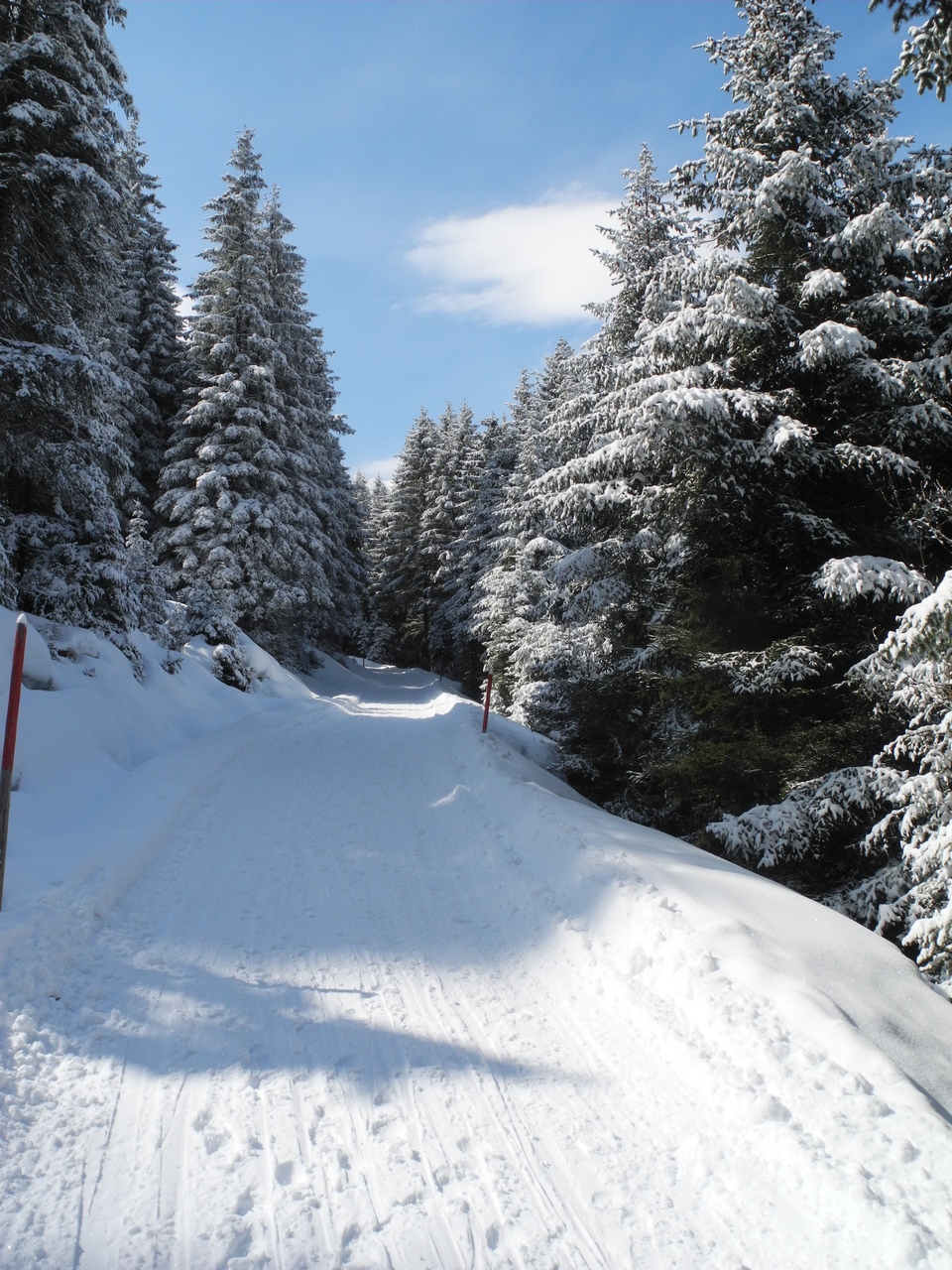 Erfreulicher Weise war die Bahn erst am Vorabend noch einmal präpariert worden und somit beim Aufstieg am späteren Vormittag in einem guten Zustand; ein harter Untergrund mit einer weichen Neuschneeauflage.