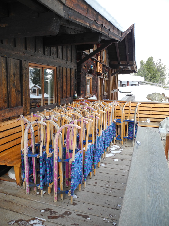 Für die Talfahrt kann man sich auf der Alm auch eine Rodel leihen: