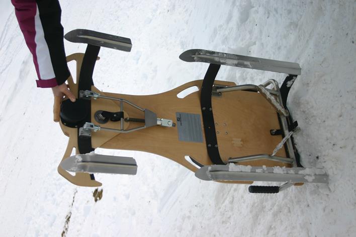 Hallo , es gibt ein neues Schnee-Fungerät. Ich hatte letztes WE die Möglichkeit das Teil zu testen und mit dem Hersteller ausgiebig zu reden. Man kann es am ehesten als Edel - Lenkbob bezeichnen, alles ist sehr hochwertig verarbeitet und stabil konstruiert.
