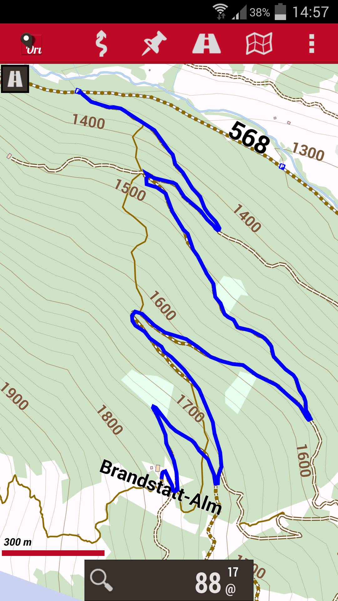 Die Tracks gebe ich dann in die App OruxMaps. Diese App kann mit den Karten draußen in der Natur offline gelesen werden und man braucht daher keine Netzverbindung. Ein GPS-Signal ist aber meist verfügbar.