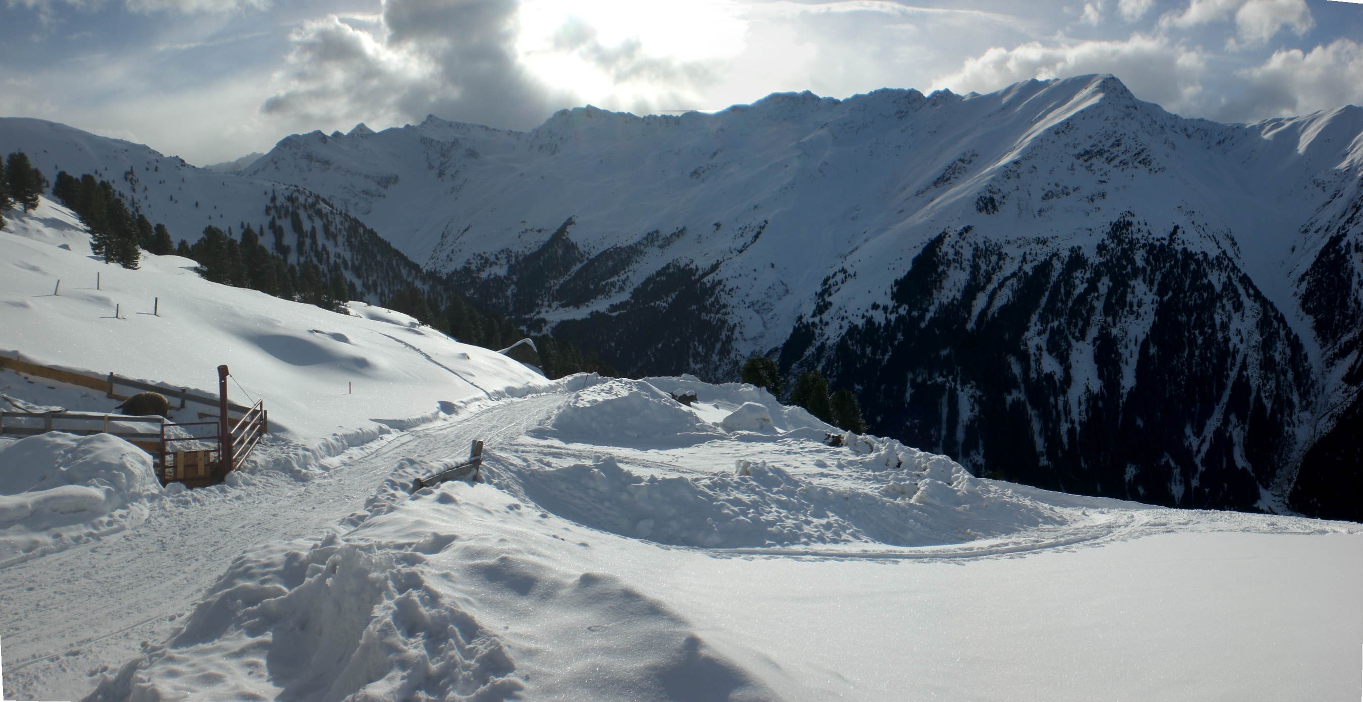 Während im Großraum Innsbruck die Bahnen arg von den Temperaturen und dem Wind zerzaust wurden :( , ist hier die "Rodelwelt" noch in Ordnung. Der Aufstieg bei Windstille und Sonnenschein war ein Genuss:
